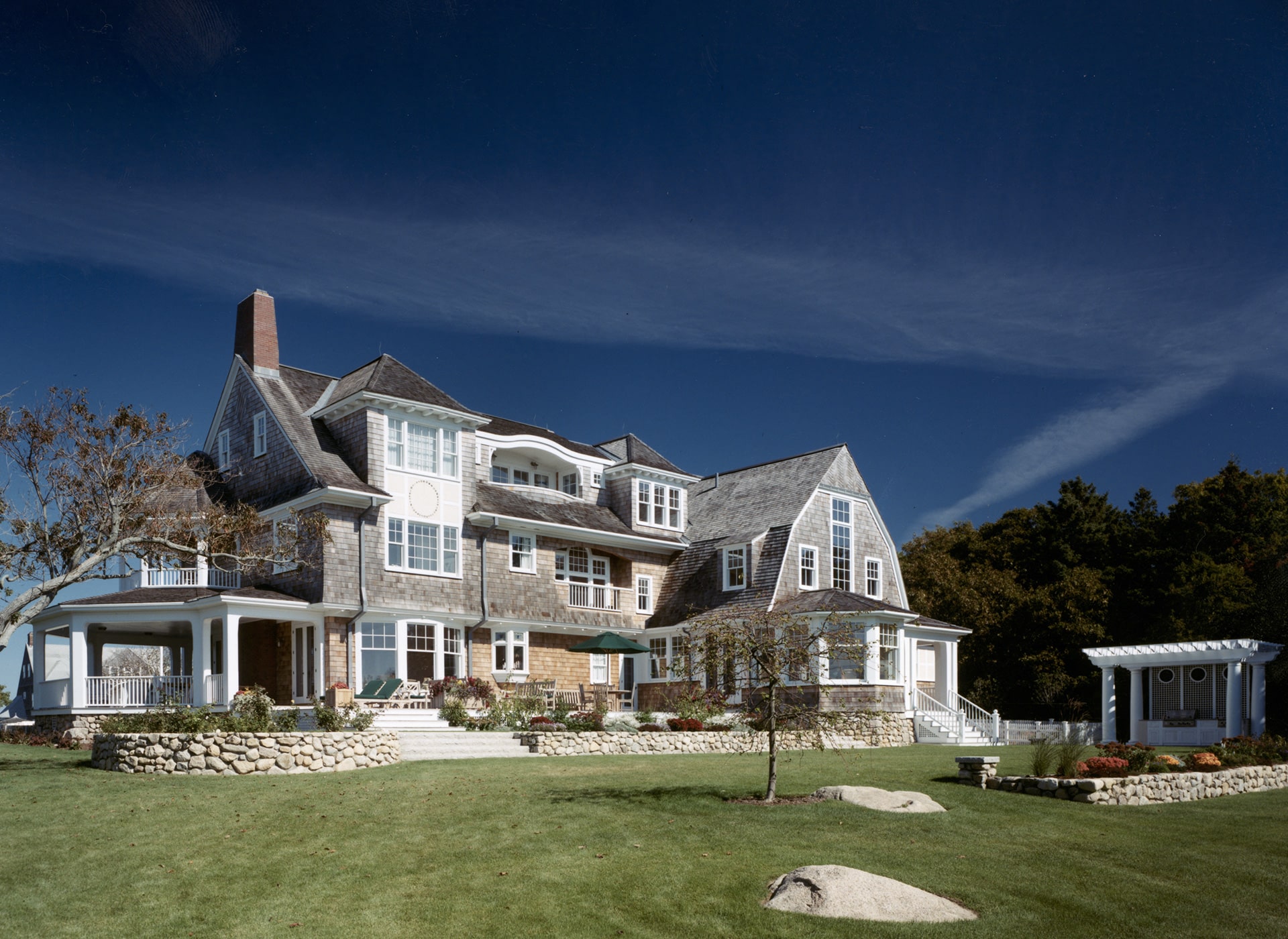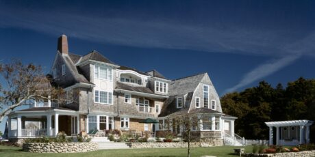 This 19th century summer home near the ocean was renovated to serve the needs of an active contemporary family. The project was the family’s second with Thoughtforms, who also worked on their main house west of Boston. The entire interior was reorganized for better flow, while key historic features like period mantels and stained glass were retained. A one-story columned arcade links the main house to a new carriage house. All of the windows were replaced in the main house to take advantage of the surrounding ocean views.