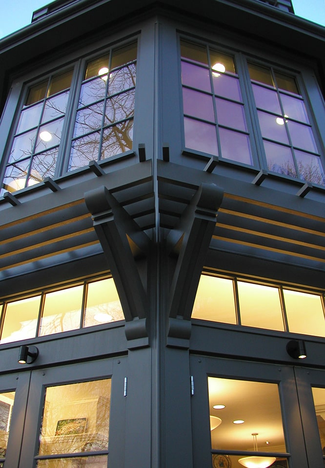The exacting coordinated design and detail to reinforce these aims was achieved with Thoughtforms careful craftmanship and follow through. Custom designed bamboo cabinetry and hardware and rigorous interior and exterior detailing enhance the bold core objectives that result.