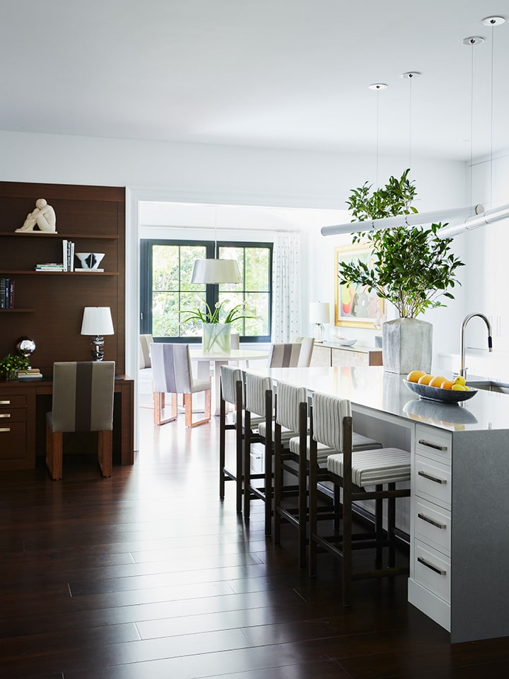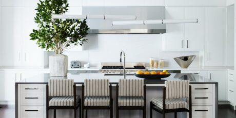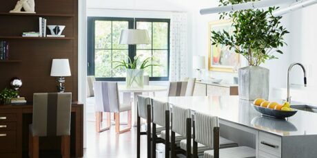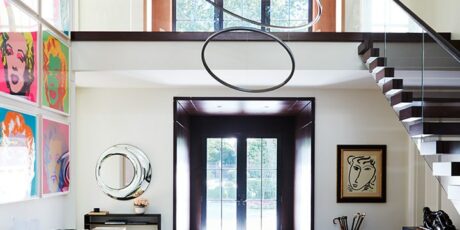 A long-time client approached us to build a new home better suited to their evolving needs. Finding a site in their neighborhood proved challenging so a site with an existing home was selected and the existing home was throughly deconstructed and salvaged, yielding a significant tax-credit for the client and substantially reducing the amount of material sent to a landfill. The new home features stucco exteriors, walnut flooring, and European-style tilt-turn windows. There is also a floating, cantilevered main stairway with a glass balustrade beneath 20-foot high ceilings.