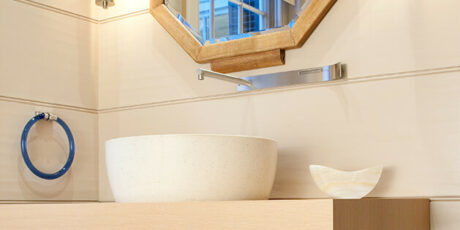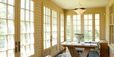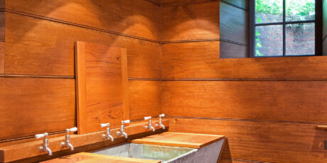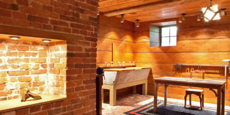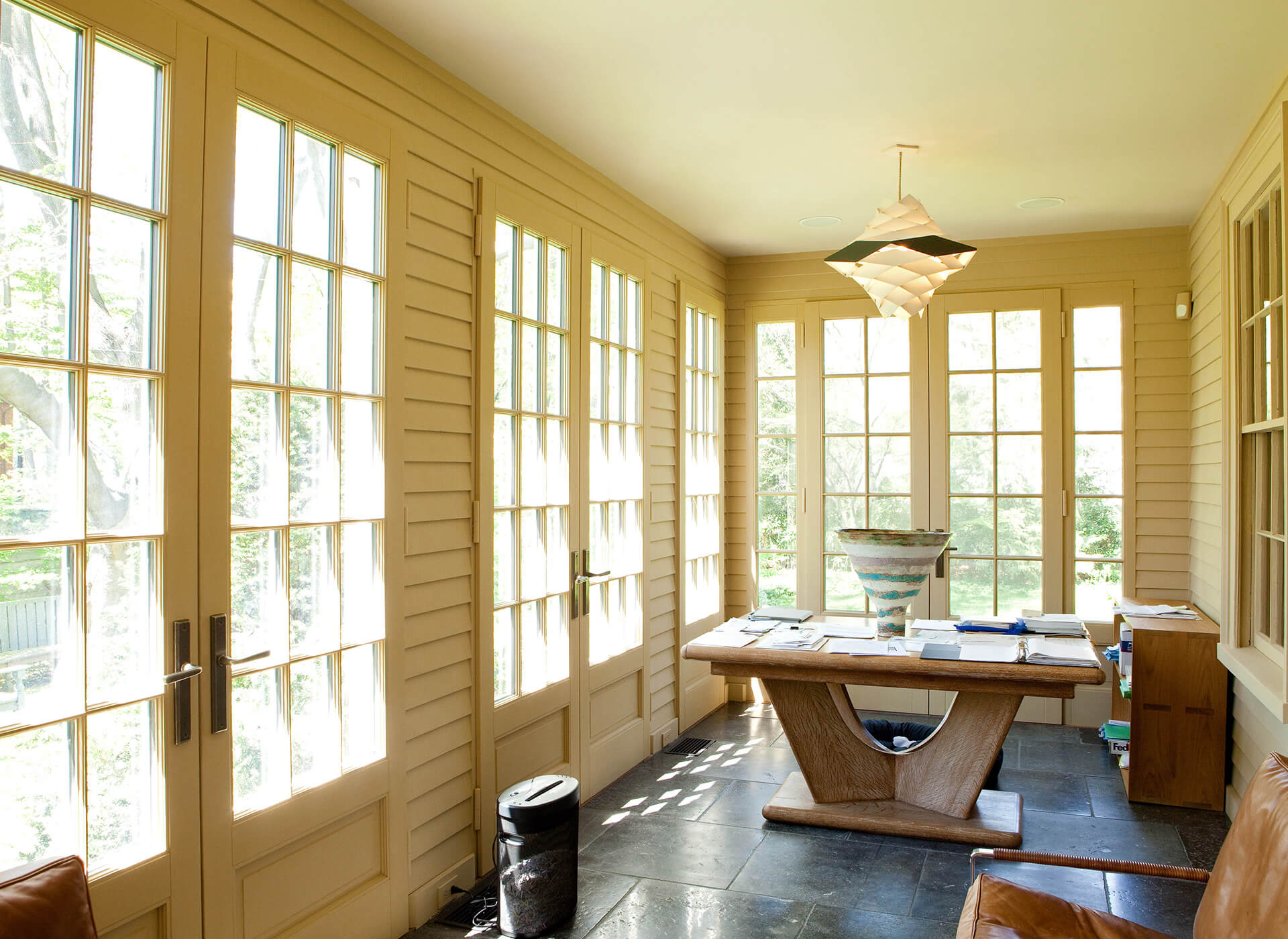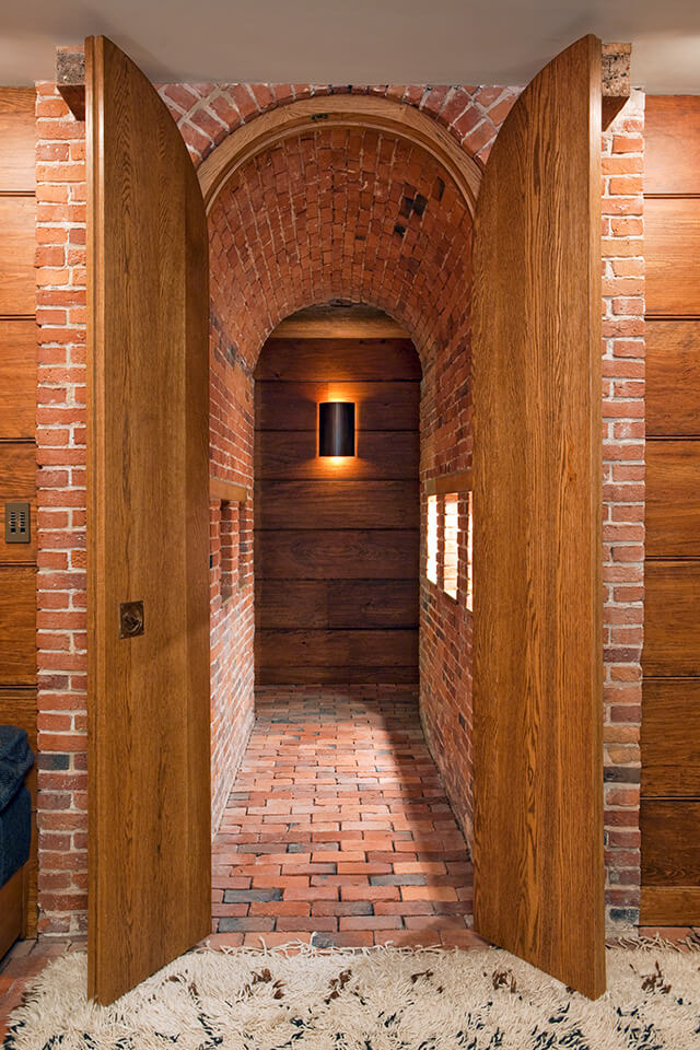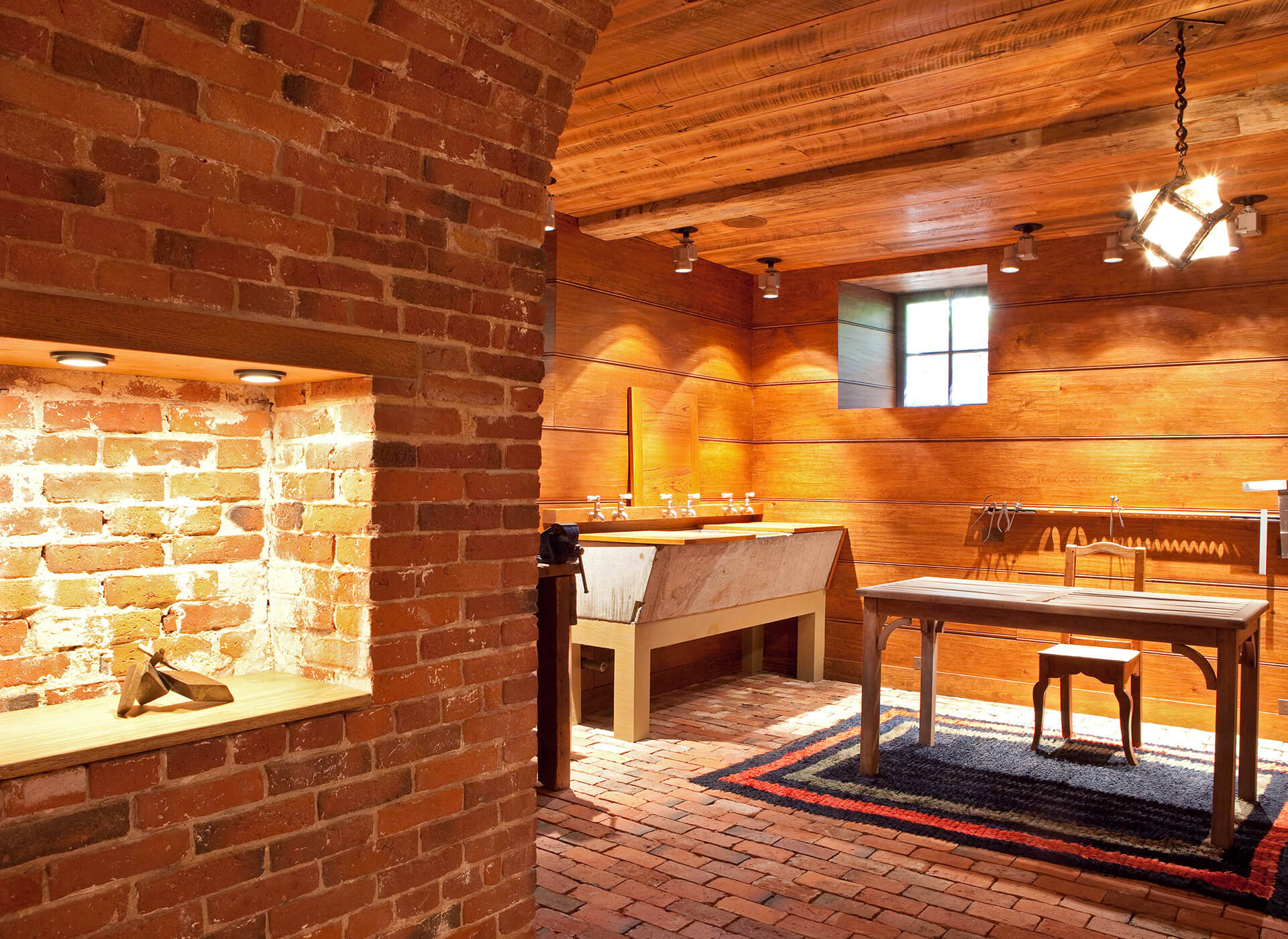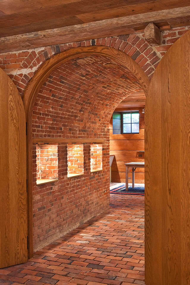 The brightly lit spaces and comfort of modern heating and cooling are the only clues that this home was modernized. The meticulous renovation is evident to the keen eye in the careful selection of materials and integration of systems: reclaimed 28″ wide boards dating back to the 1800’s were sourced to seamlessly integrate with existing wide King’s Pine wainscot; original brickwork was carefully cleaned and repointed; and, modern electrical controls were discreetly placed inside cabinets and behind hallway artwork.