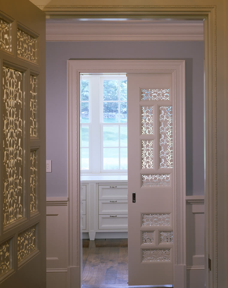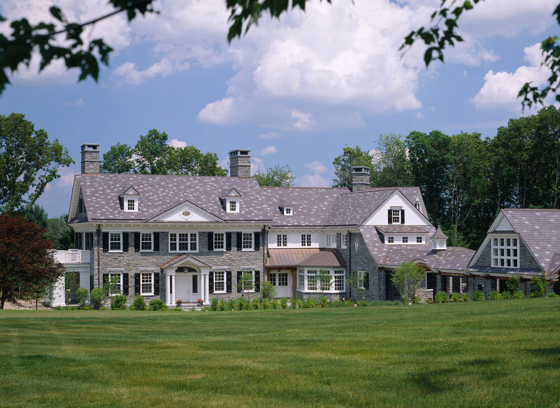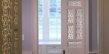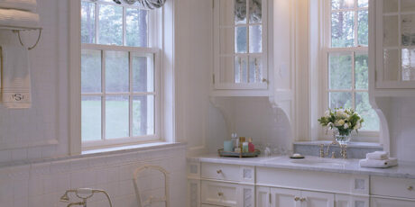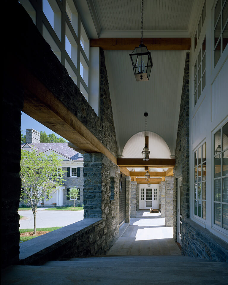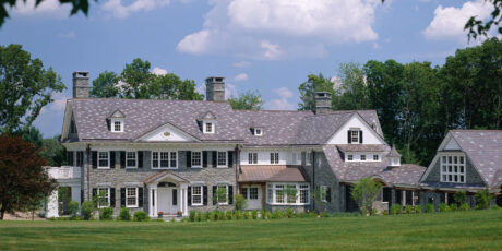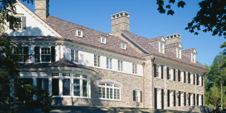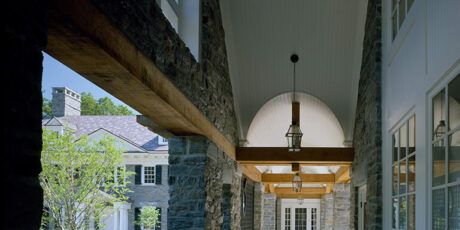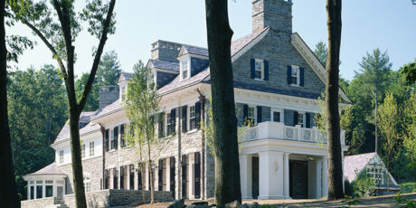 Meticulously crafted of Wissahickon Schist, Vermont Slate, copper, and sustainably harvested wood, this environmentally friendly home uses a ground-source heat pump, also referred to as geothermal, for central cooling and heating throughout the year. The home also has carefully planned ventilation to ensure fresh air is circulated throughout the living spaces. Sited on a north facing slope, the house was designed to allow an abundance of natural southern sunlight to wash the living spaces and expansive views of a rolling, historic meadow.