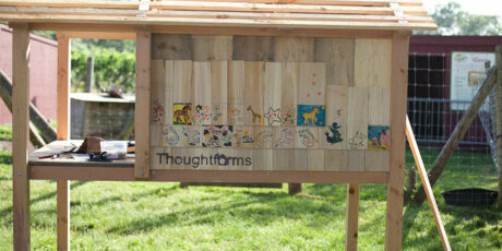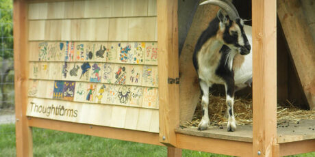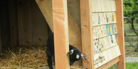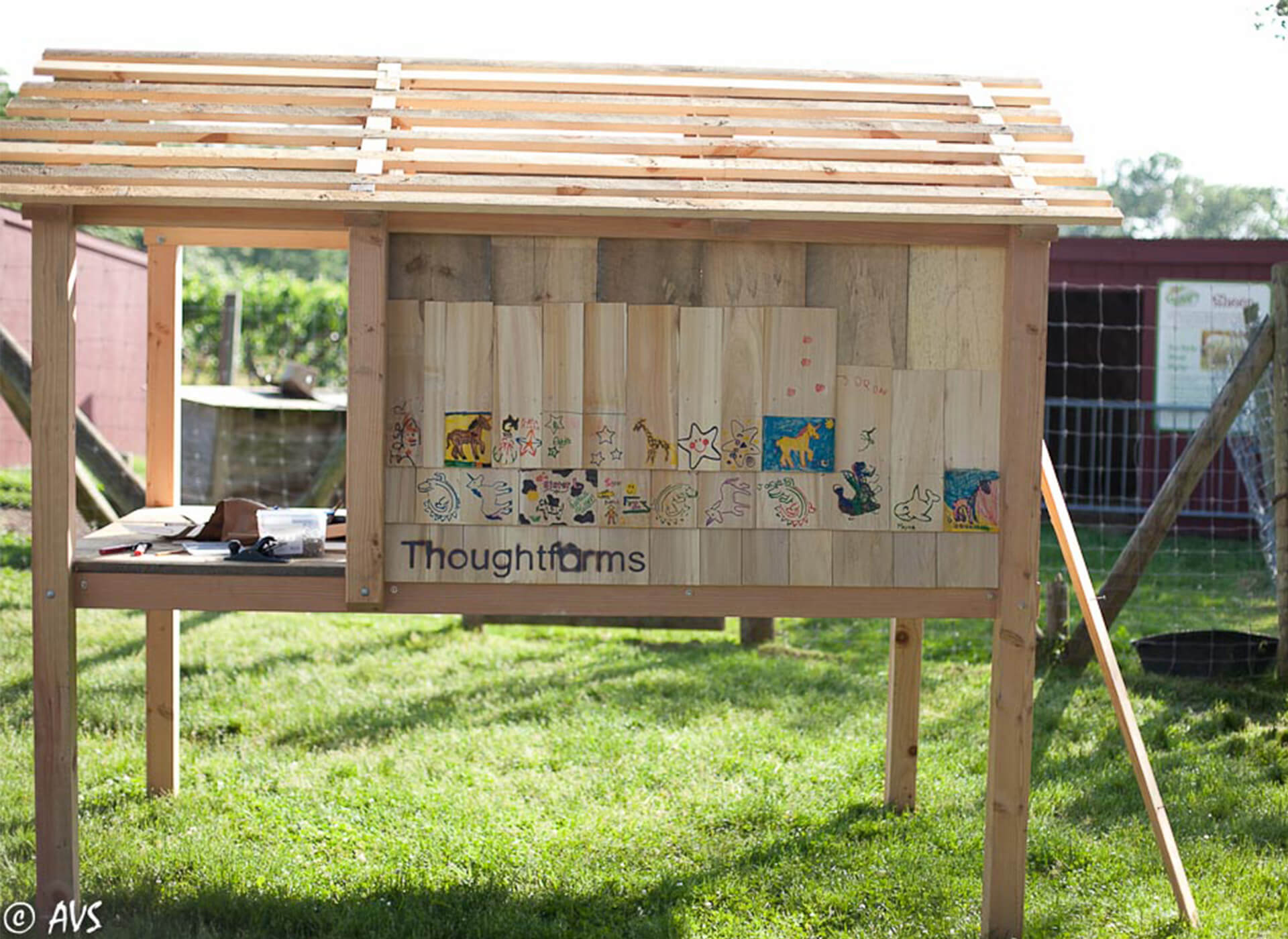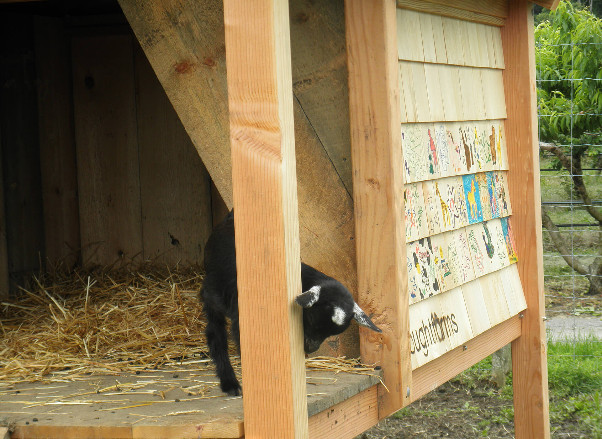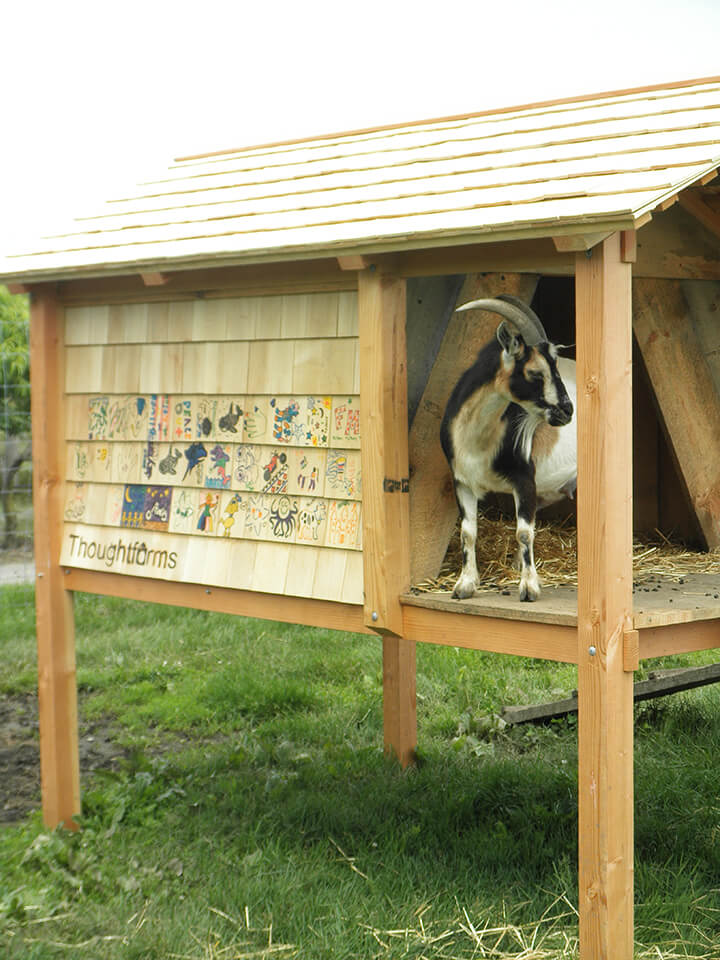 One Family is dedicated to ending family homelessness in Massachusetts. We became connected with this organization through an existing relationship with the founders. One Family was looking to provide kids with an opportunity to build something related to home at their annual event scheduled to take place at Belkin Lookout Farm in Natick. We immediately wanted to get involved and donate our resources. Our shop brainstormed ideas with the One Family team and decided that whatever was built should be built to endure. The conversation evolved and the idea of a goat house emerged. We hit on the idea of having kids at the event decorate a shingle that would be attached to a goat house we would build and leave at the farm (we looped in the farm folks as well to make sure we were building something useful for them!). We built the shell and our own Dan Dagle helped the kids attach their shingles to the shed during the event (under the watchful eyes of the goats).