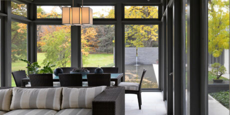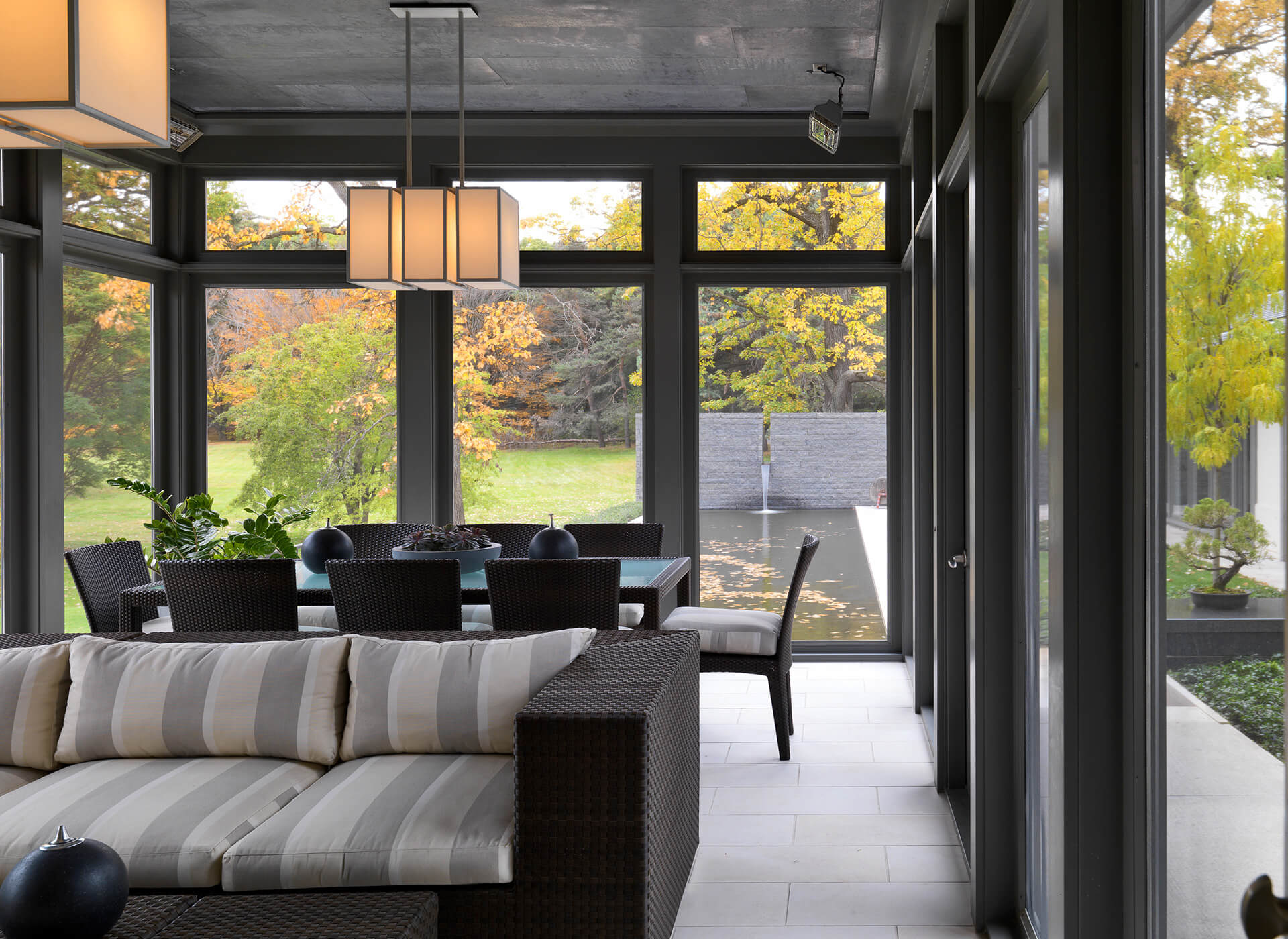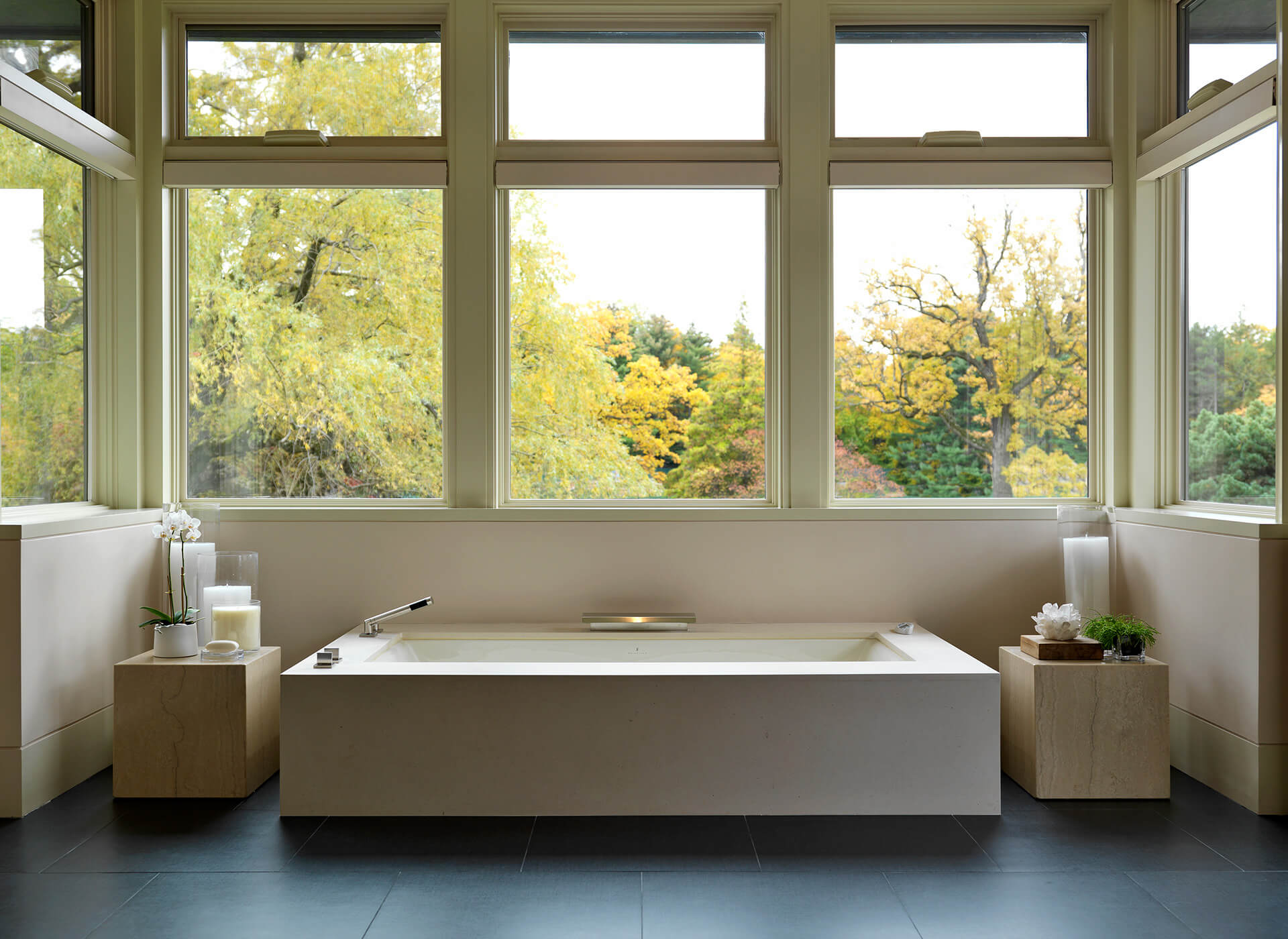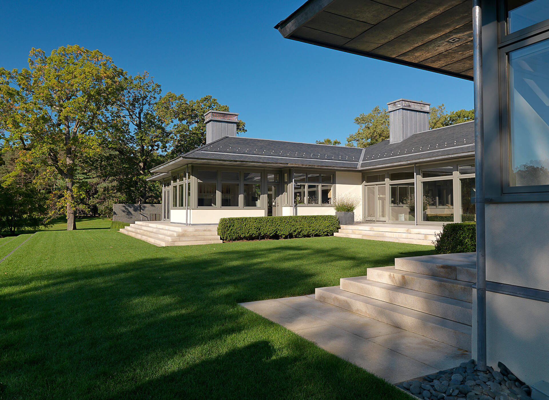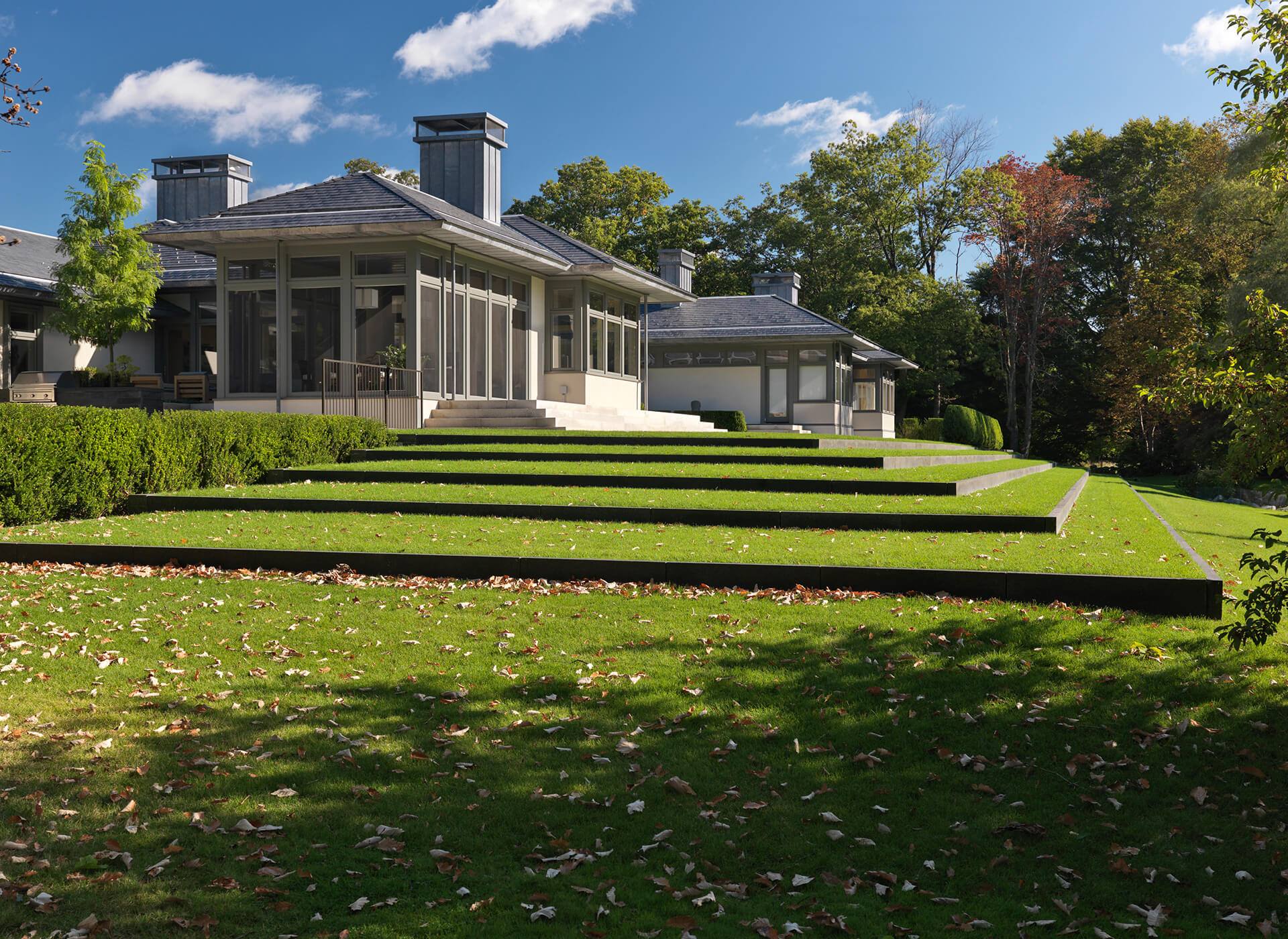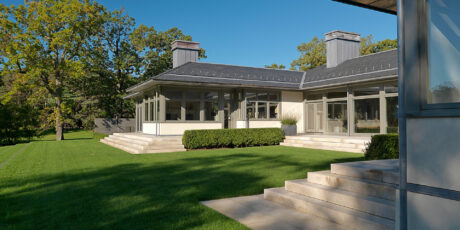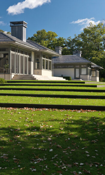 Set on an expansive landscape in Chestnut Hill, this single-story home is designed to give a feeling of separation between family, guest, and entertaining spaces. An outdoor fountain and reflection pool serve as a focal point to the serenity of the grounds.