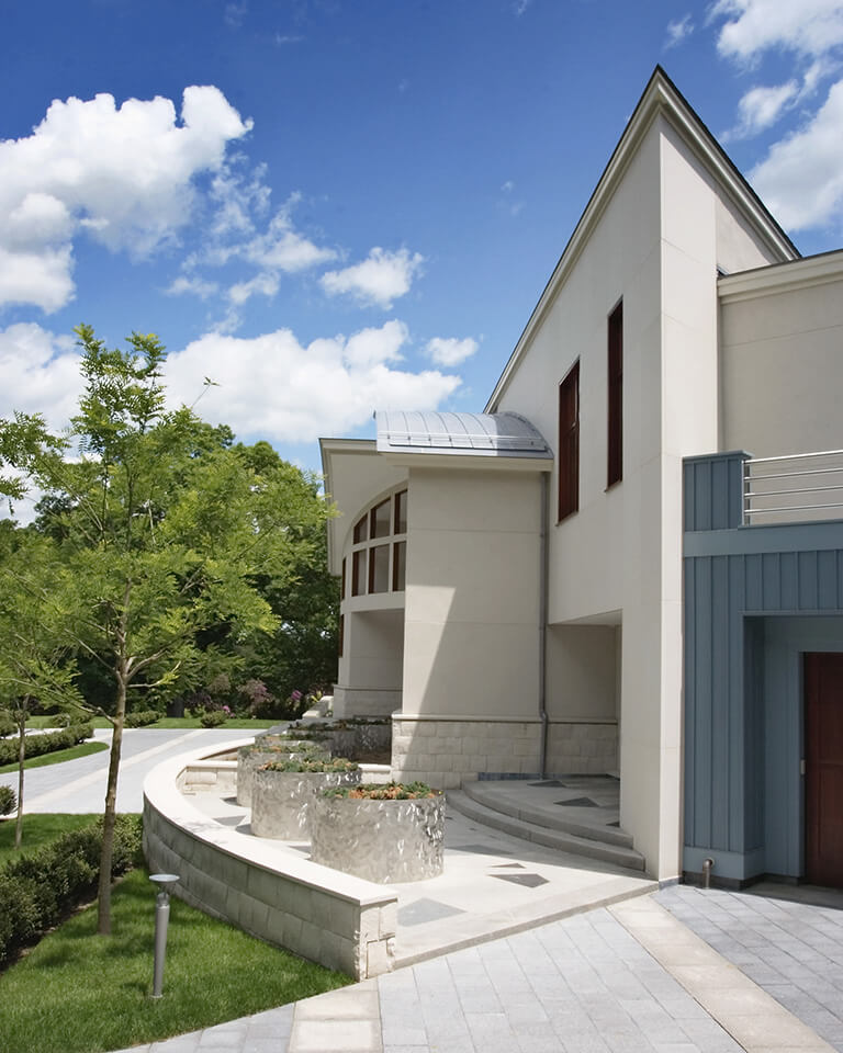The exterior of this unique, modern home is made of a series of curves, each with varying rhythms. The Dolomitic white limestone was sourced domestically to achieve the clean exterior feel without the expense and schedule complications associaetd with importing stone from Europe. Maple hardwood floors line an indoor basketball court that sits below the basement, 10ft into the water table – a technical challenge that required systems typically reserved for commercial waterfront projects and tunnels. Given the technology involved in the home, it seemed only natural to build a replica of the Millennium Falcon’s cockpit as a game room!