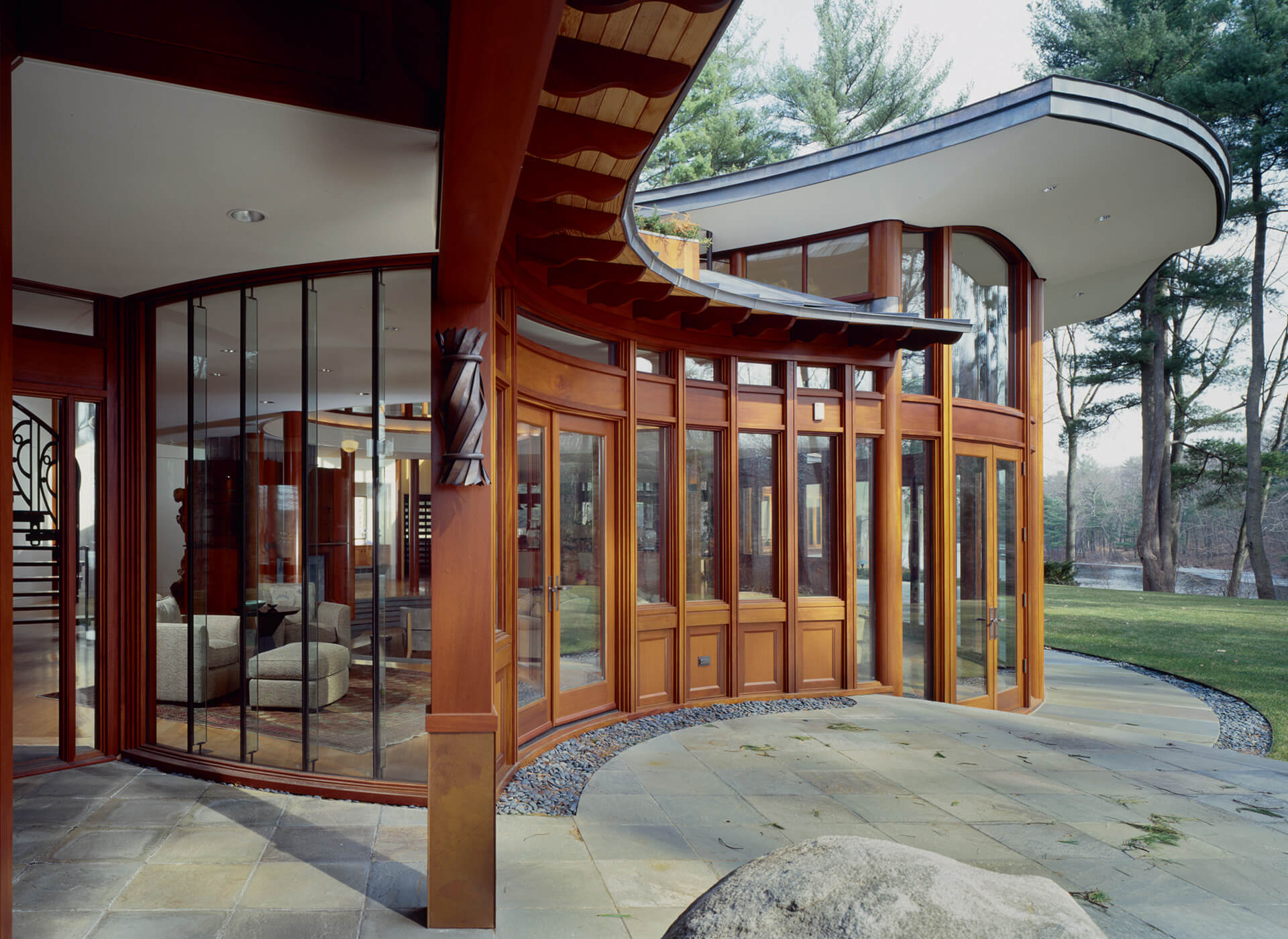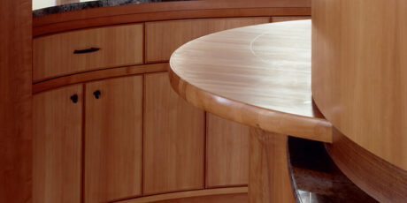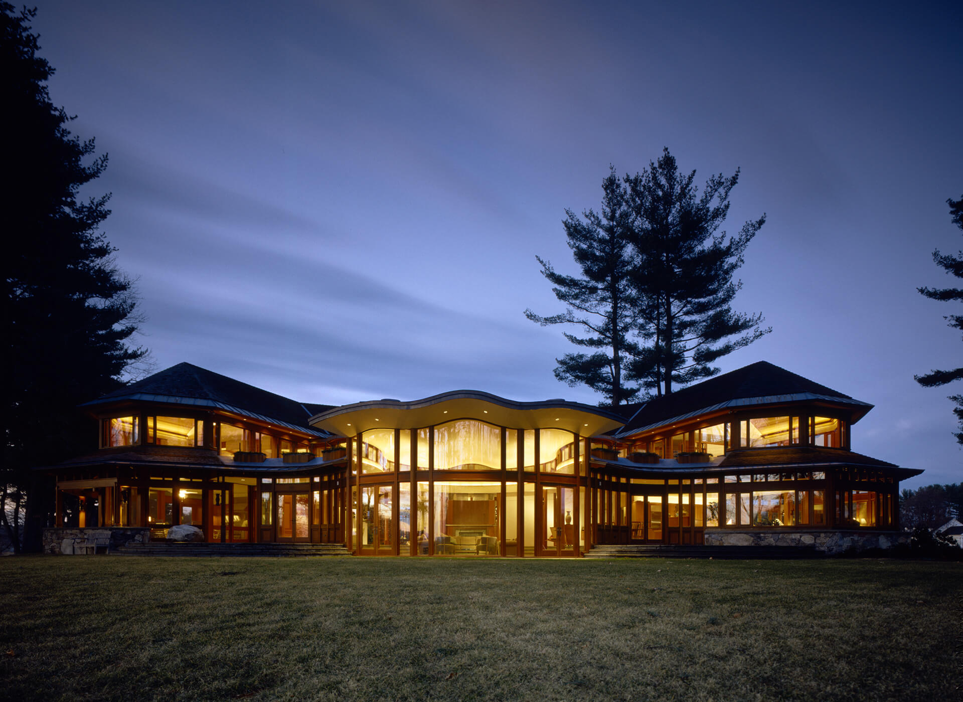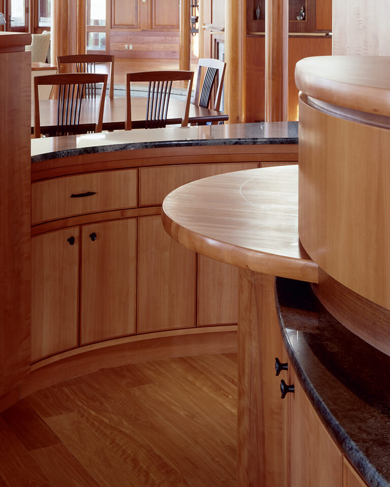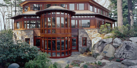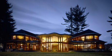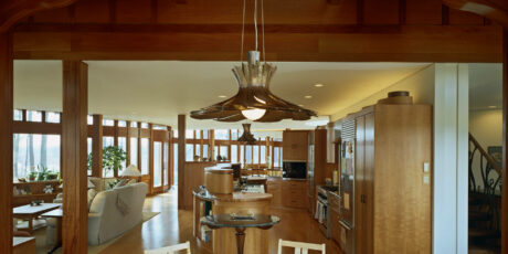 These clients wanted a contemporary home that complimented their beautiful riverside site. The architects utilized wood, glass and stone in an organic design that emphasized craftsmanship. Thoughtforms’ team, including our millwork shop, worked at building the home, which has been described as “a very large and very fine piece of furniture.”
