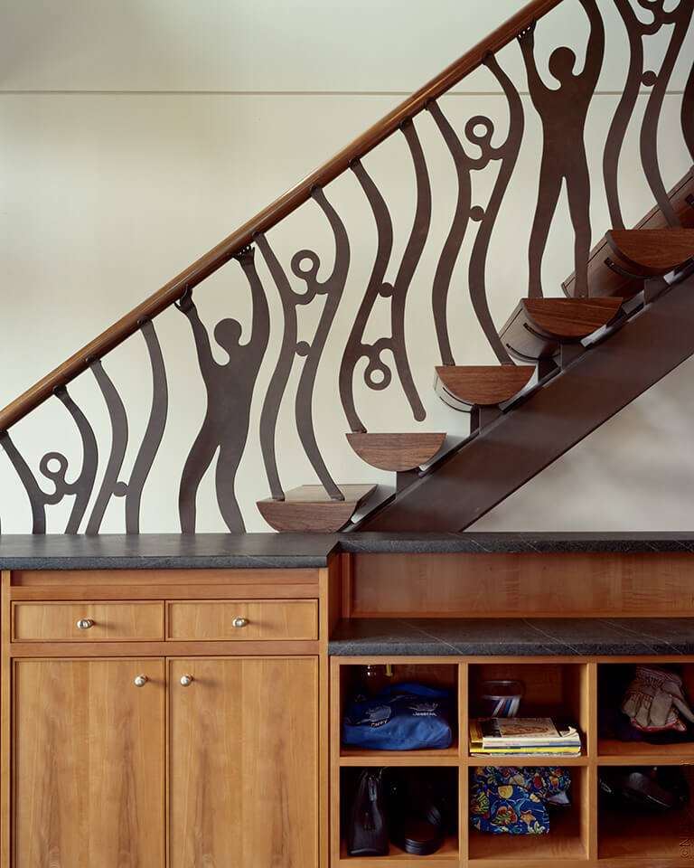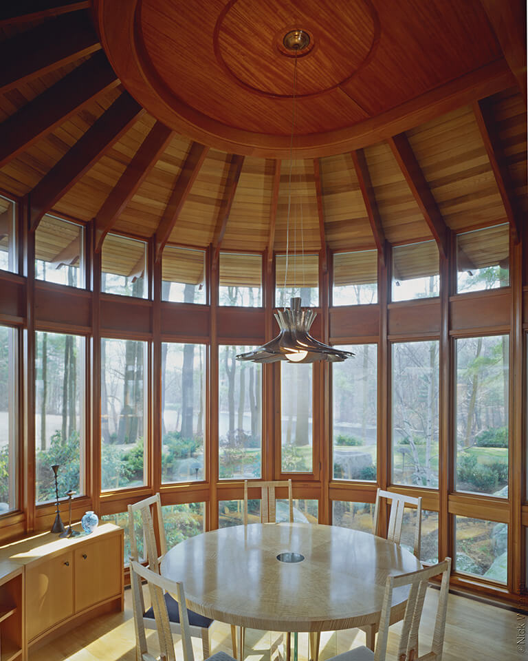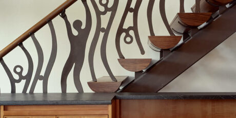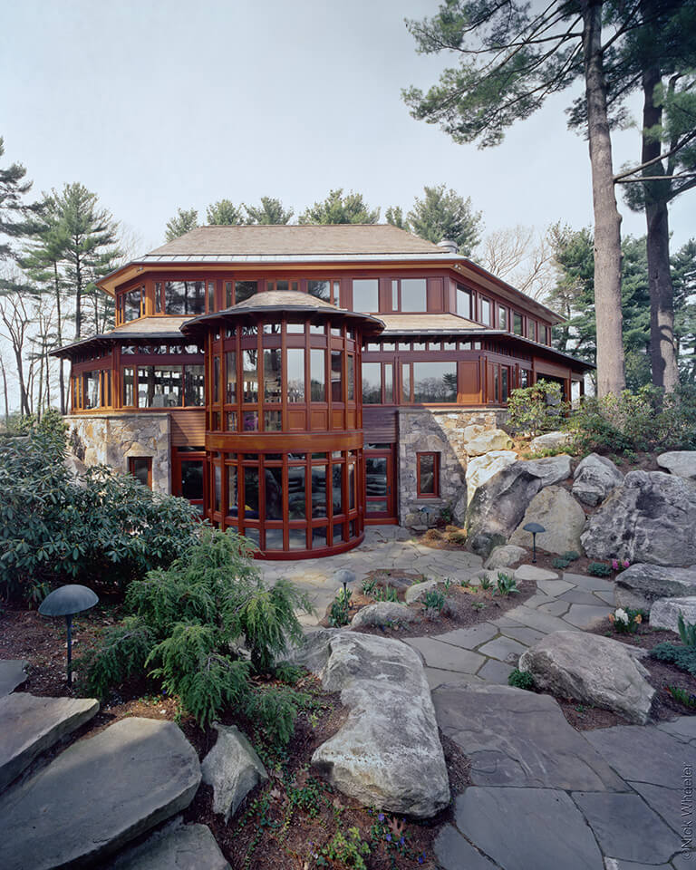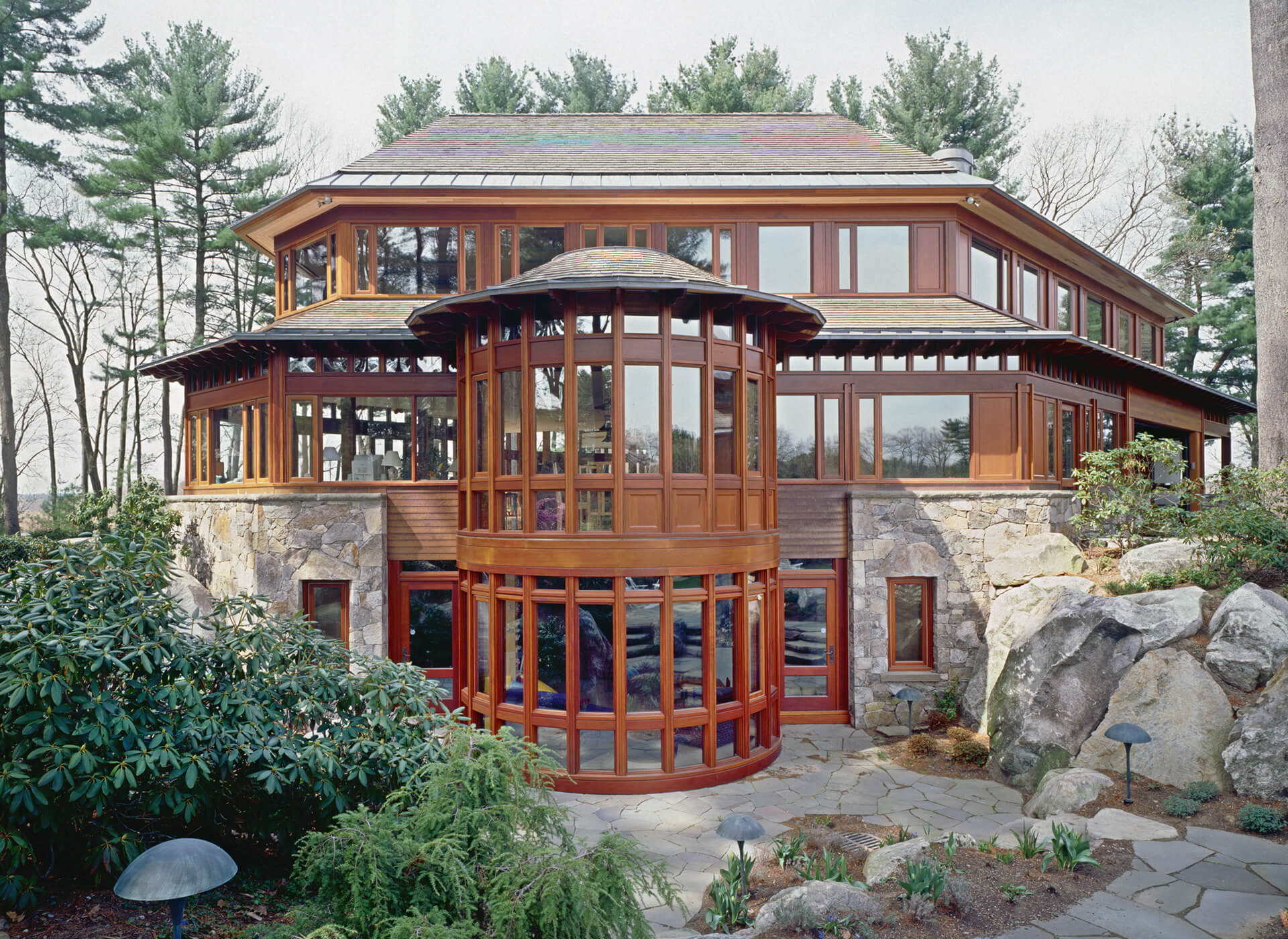 These clients wanted a contemporary home that complimented their beautiful riverside site. The architects utilized wood, glass and stone in an organic design that emphasized craftsmanship. Thoughtforms’ team, including our millwork shop, worked at building the home, which has been described as “a very large and very fine piece of furniture.”