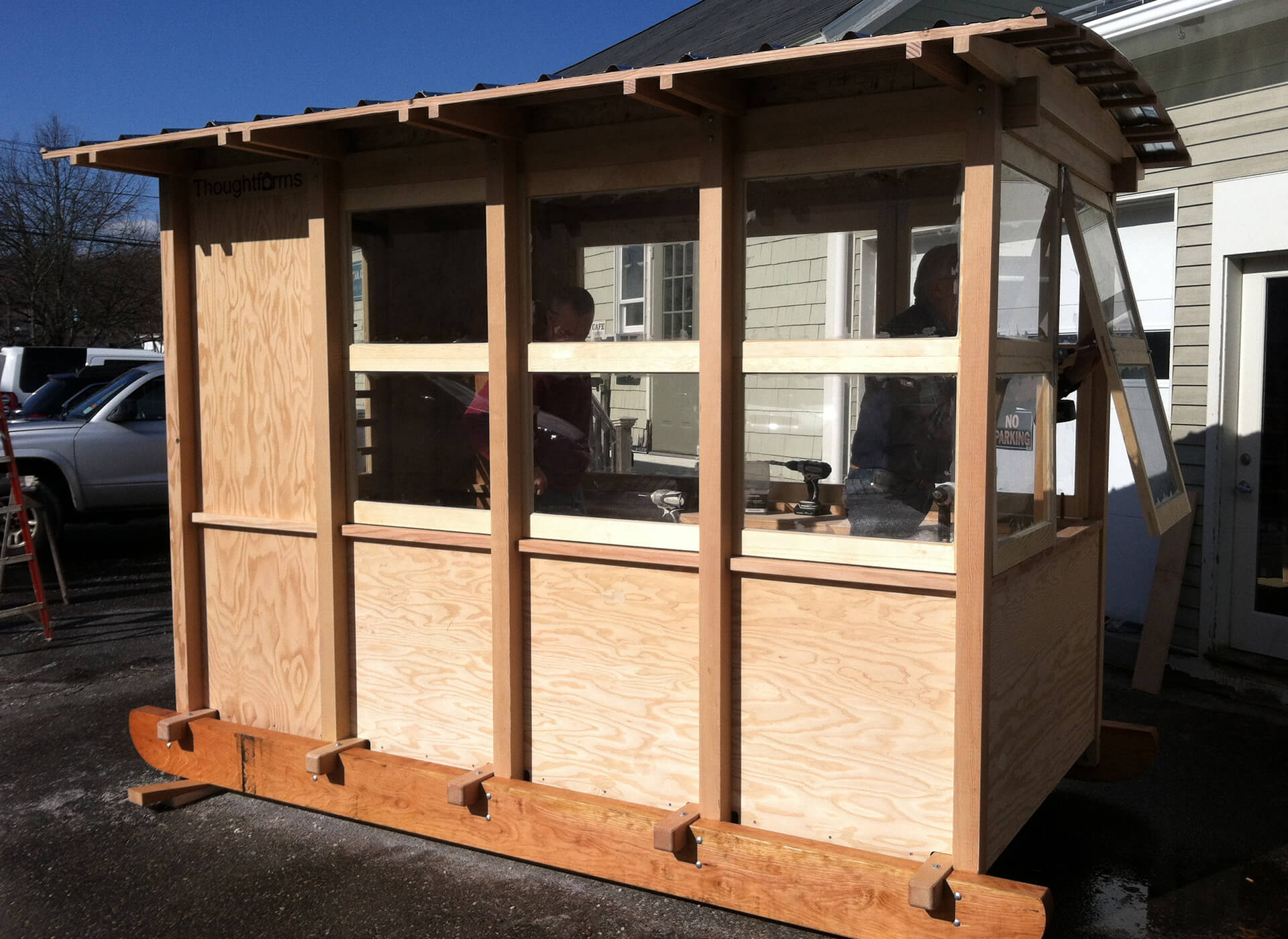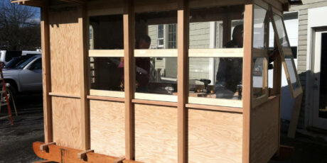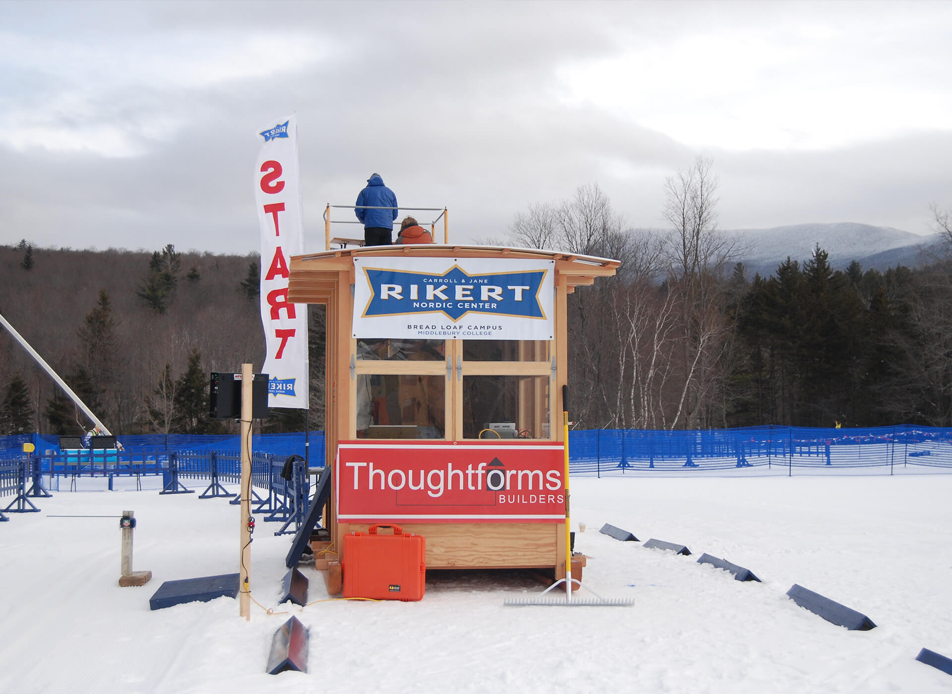 Back in 2013 the Eastern Mass. Bill Koch Youth Ski Club hosted the New England Bill Koch Festival at the Weston Ski Track. It was the first time the festival, dubbed the “Boston Ski Party,” had been held in eastern Massachusetts. Over 600 children signed up for the two-day event and volunteers were mobilized to handle everything from shuttle buses to food to race logistics. That’s where Thoughtforms recognized an opportunity to lend a hand. A building was needed to house the timing equipment and to provide the race crew a perch for observing the starts and finishes. Excited to serve the community and a sport many of us here are passionate about, we volunteered to build a shed up to our high standards that would continue to serve the organization long after the festival was over.