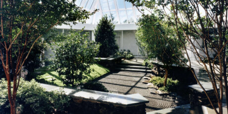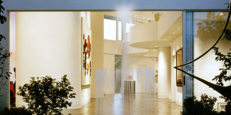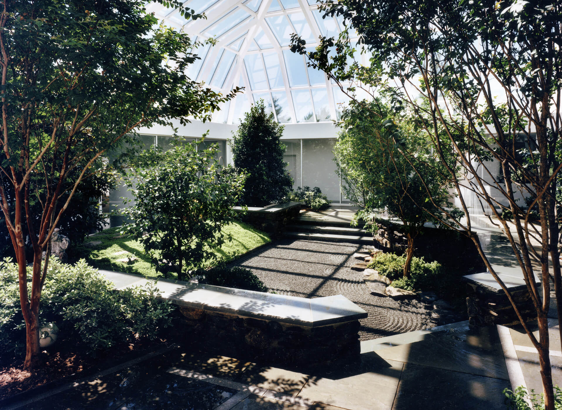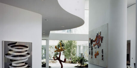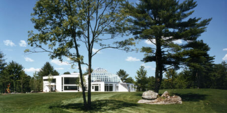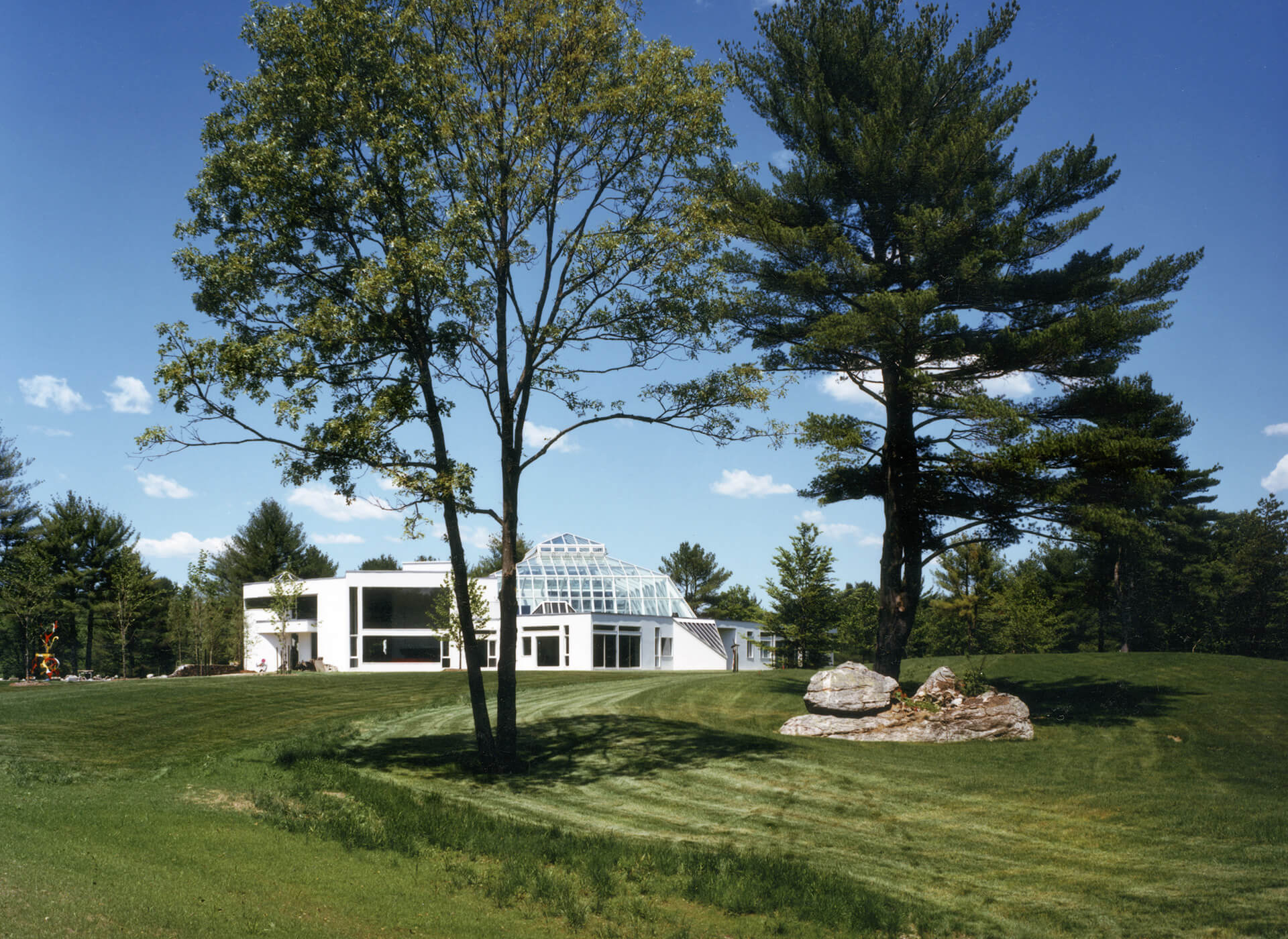 This modern Carlisle home features minimalist details and organic curves throughout the interior. The high ceilings and abundance of light highlight the extensive collection of modern art. The true core of this home however, is the spectacular gambreled atrium which houses a tranquil zen garden.
